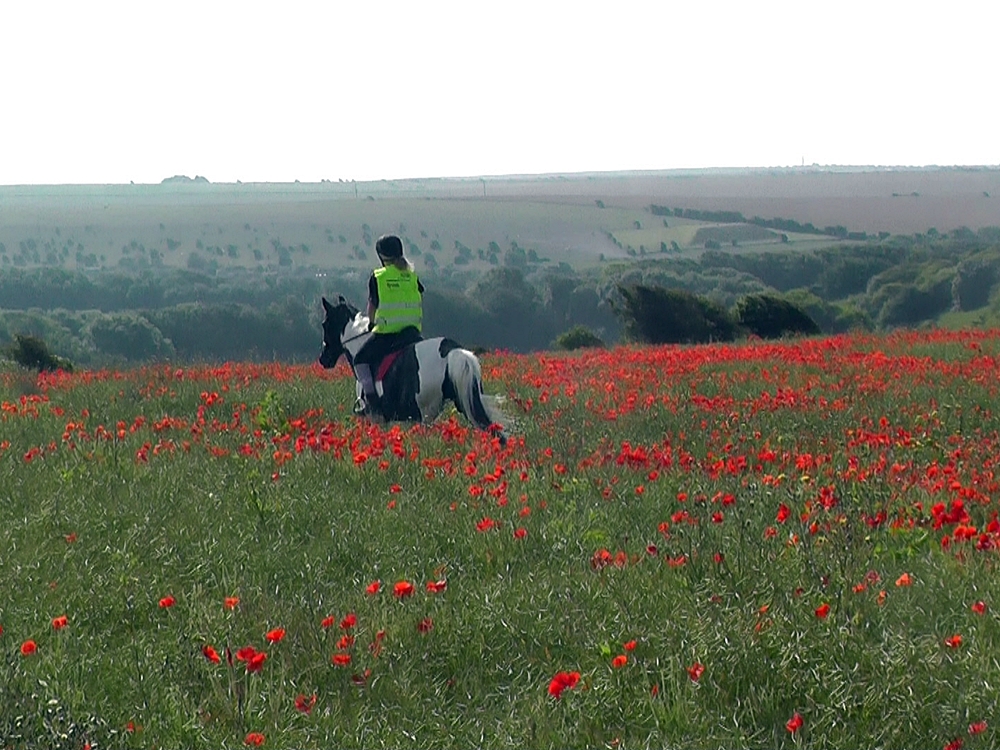 Playing in the poppies